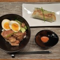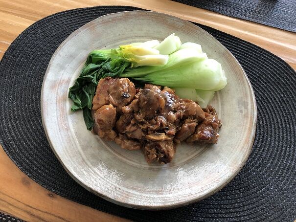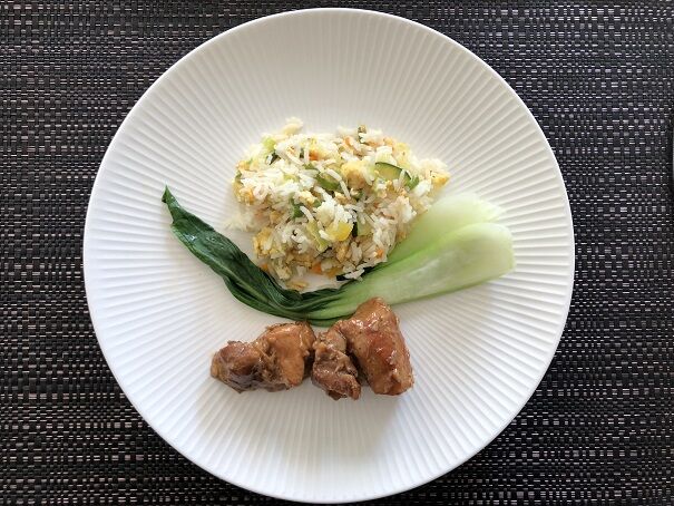 豚バラの柔らか煮、青梗菜、炒飯もどき。