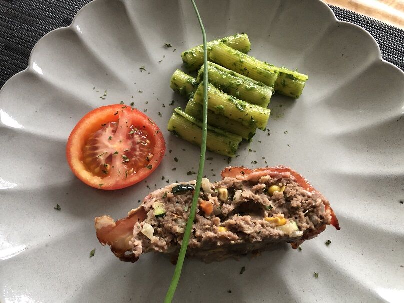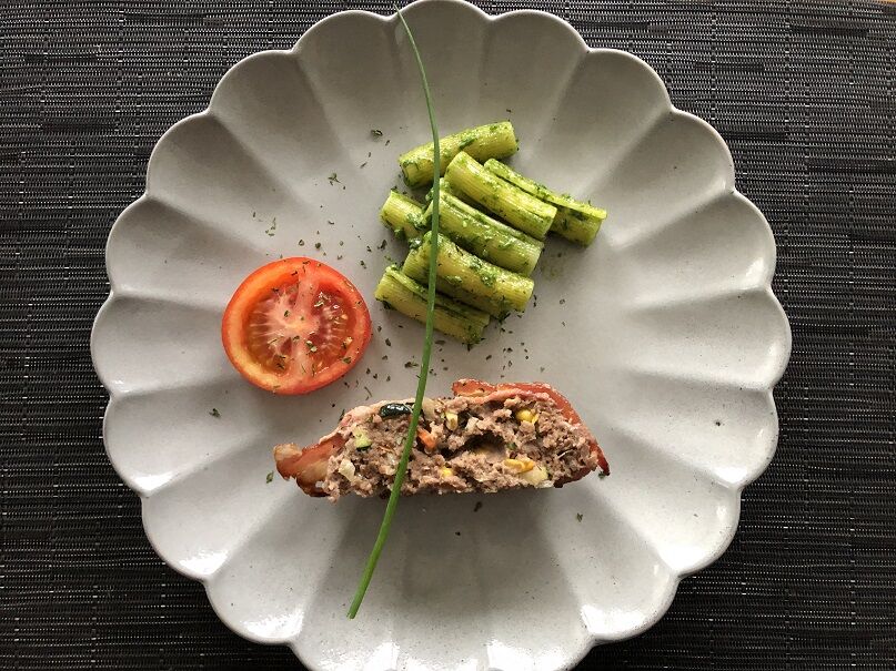 ミートローフには、人参、ズッキーニ、玉ねぎ、コーンを入れました。