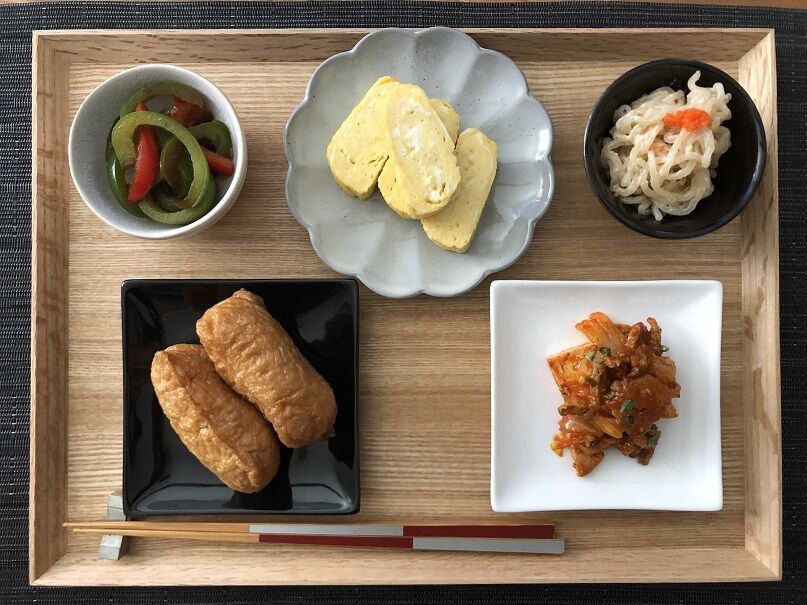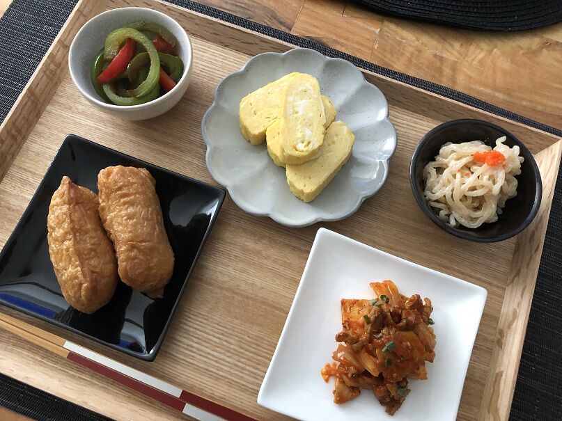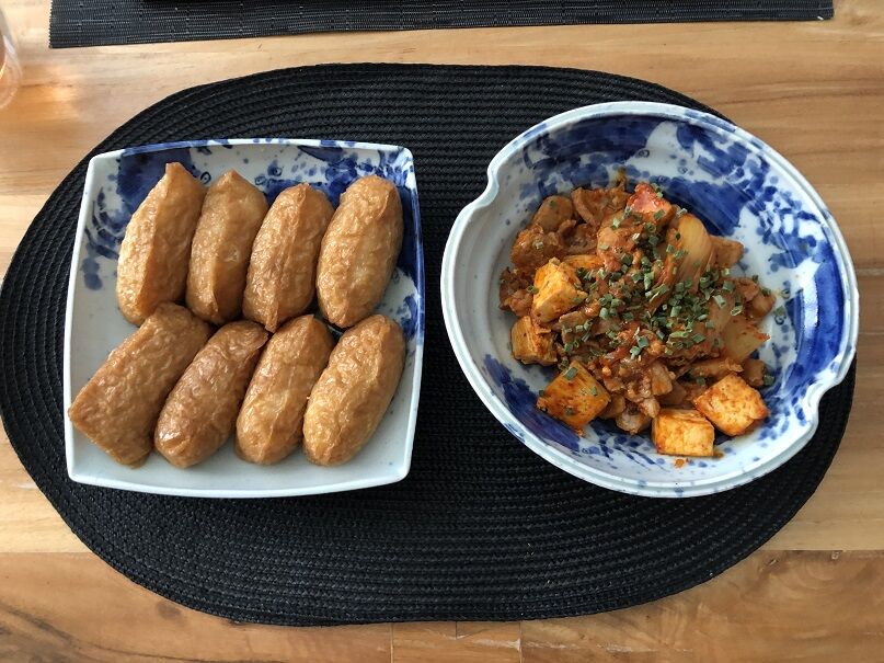 白ごはんはパートナーの箸があまり進まないし・・・と考えていたら、「いなり寿司!」。