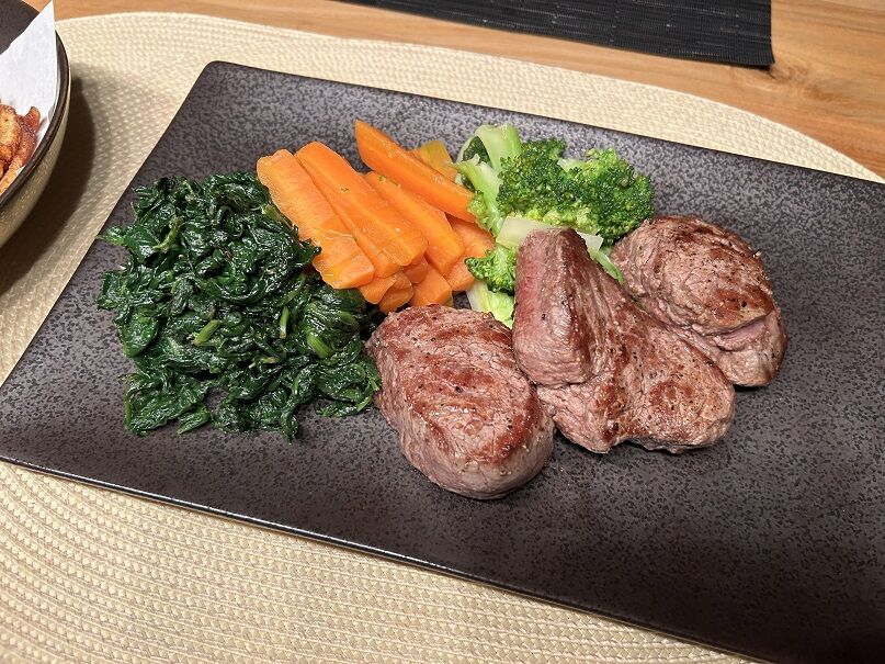 お肉は全部で250グラム程度でしたが、パートナーと分けて、それで充分!