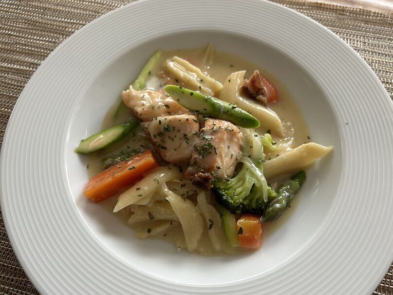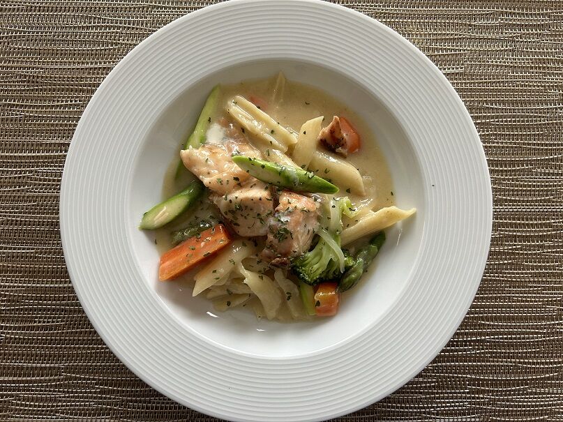 サーモンとパスタのホワイトシチュー。