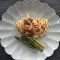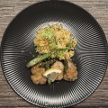 添えたのは、バスマティライス+キヌア、茹でたアスパラガス、ミニトマト、目玉焼き。