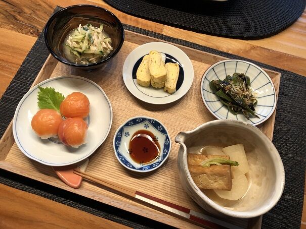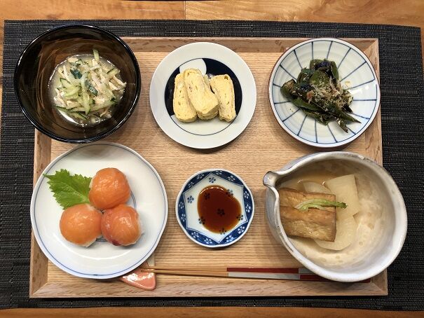 他にも副菜を準備してありましたが、お盆に乗り切らないので出すのを止めました。