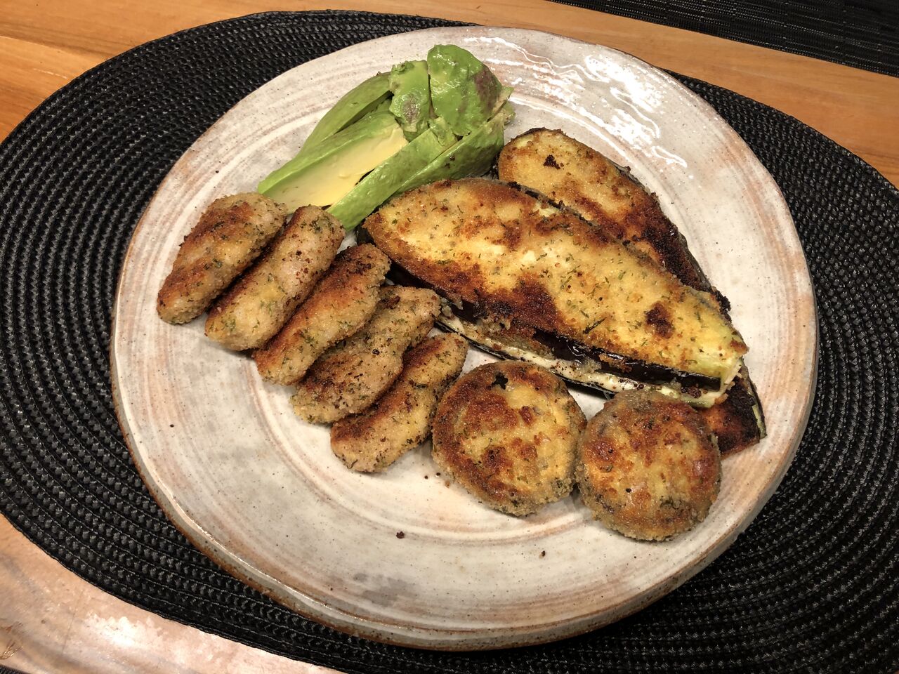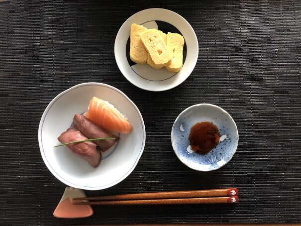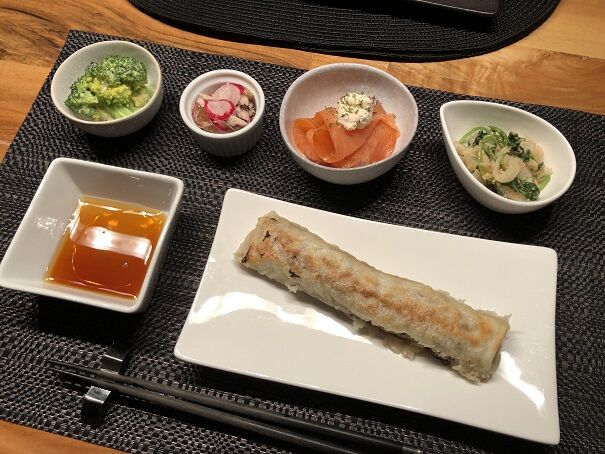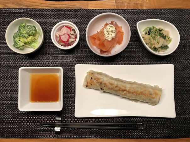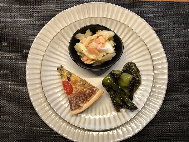 箸休めは、スモークサーモンとセロリのマリネと、切り干し大根と人参のサラダ。
