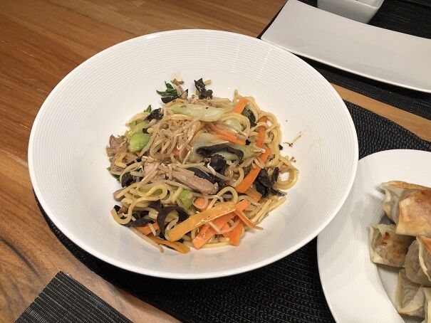 スープは干し椎茸の戻し汁に創味シャンタン、だし粉、薄口しょうゆで味付け。