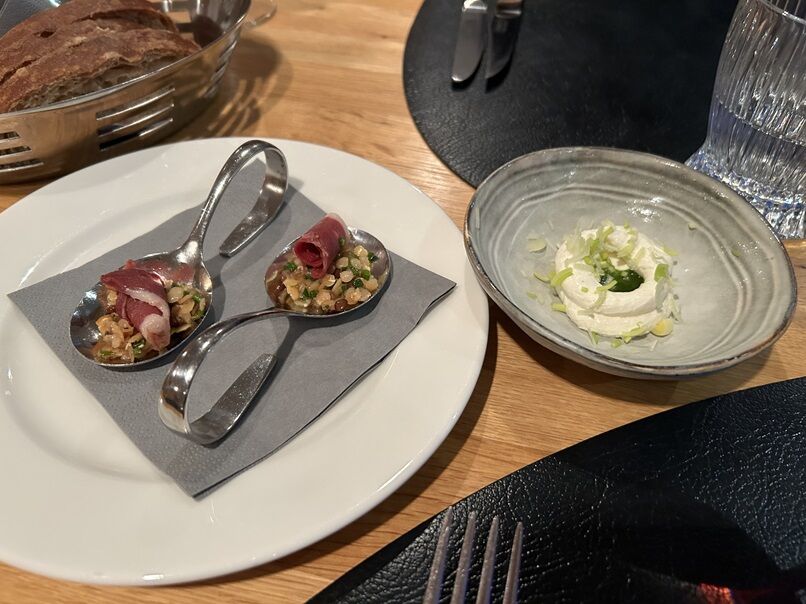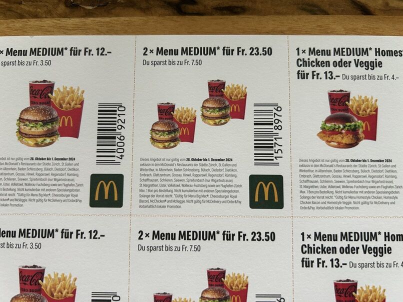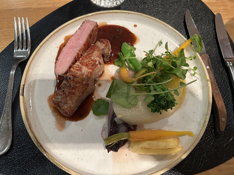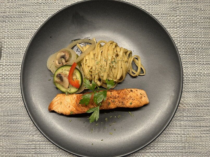 ≪スイスでは、お肉やお魚の付け合わせがサラダのメニューを、