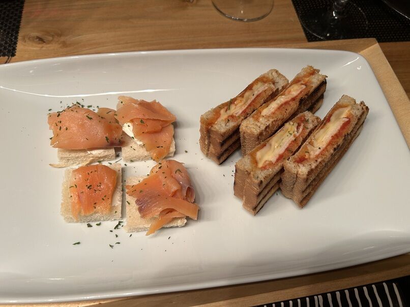 そしてふと思いついて、スモークサーモンの残りとクリームチーズで、カナッペ風に。