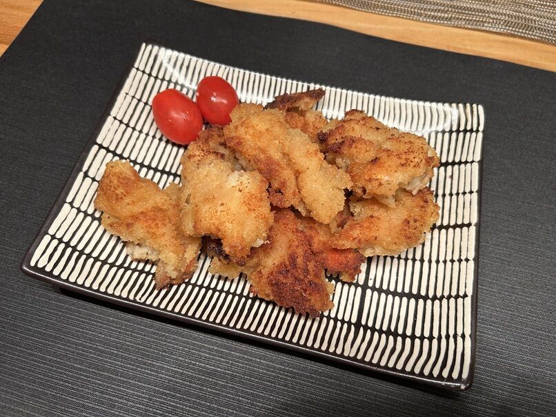味付けはガーリックパウダー、オニオンパウダーで、オリーブオイルを入れて混ぜました。