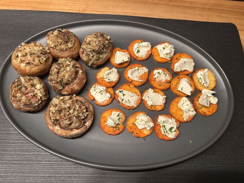 食べて飲んでいる間に、スタッフドマッシュルームを。