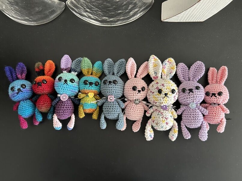 ニッティングセラピーの話をして、イースターバニーを見せたら、