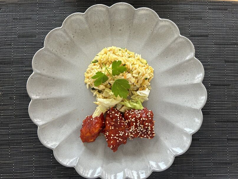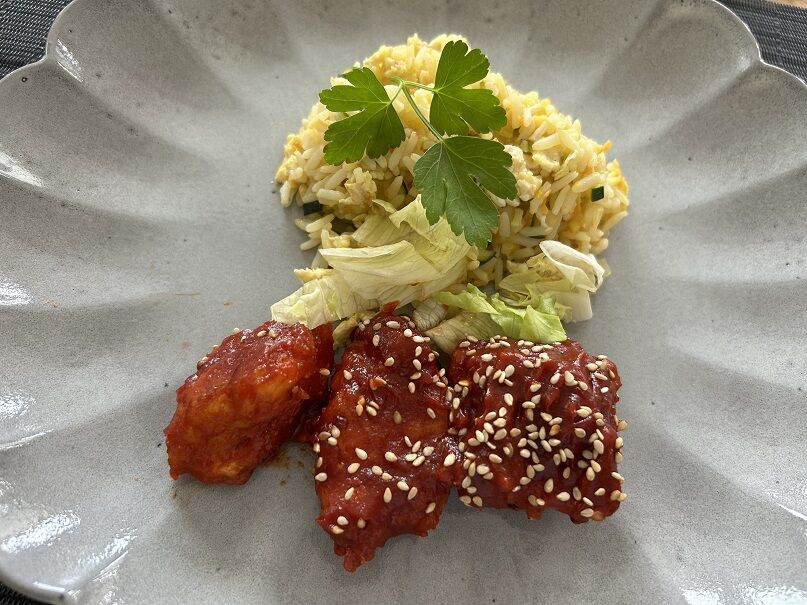 ヤンニョムチキン+炒飯もどき。