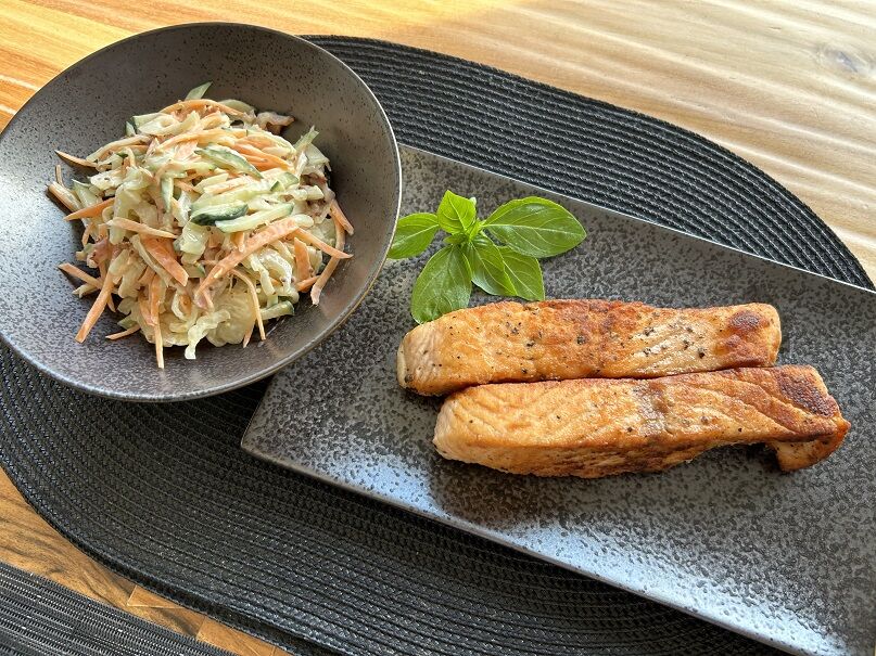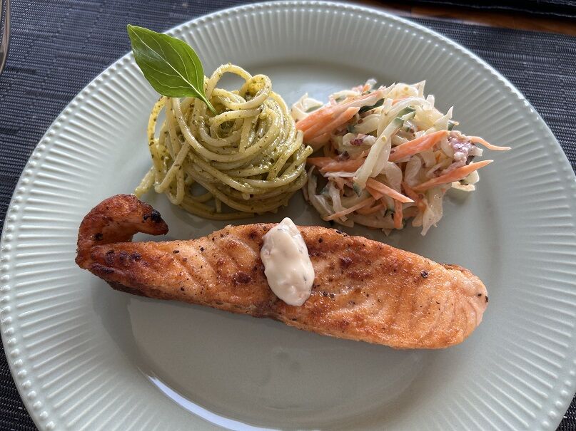 食欲があまりなくて、珍しくサーモンを半分くらい残しました。
