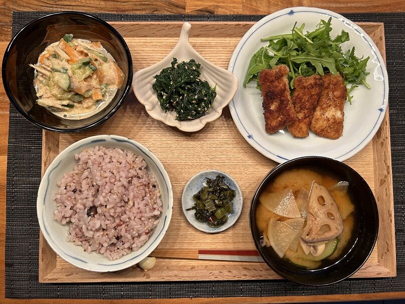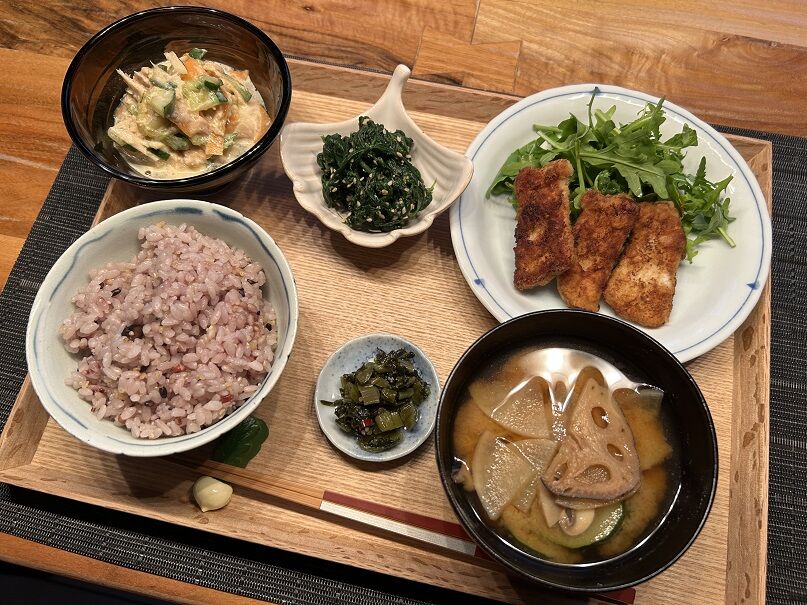 お味噌汁には、乾燥蓮根、ズッキーニ、大根、マッシュルームを。