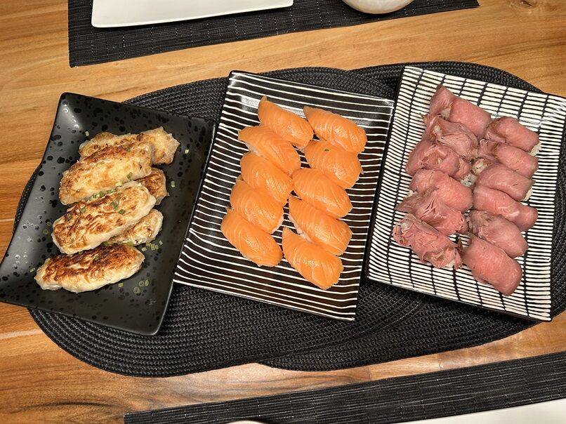 お寿司にはスイスのスーパーマーケットで買えるMARUSHIMA SHOYU(丸島醤油)を、