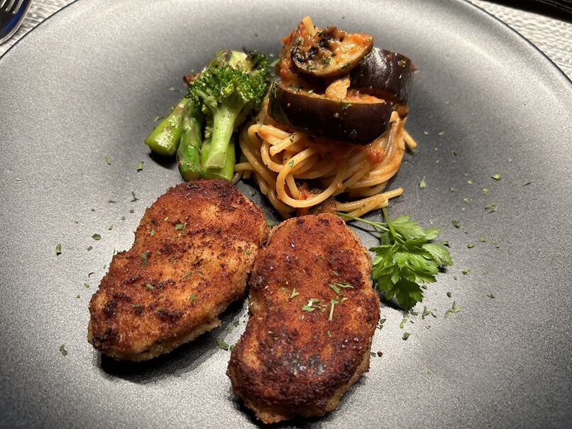 夕食は、冷凍庫のお肉を減らすプロジェクトの一環で豚フィレ肉を使いました。