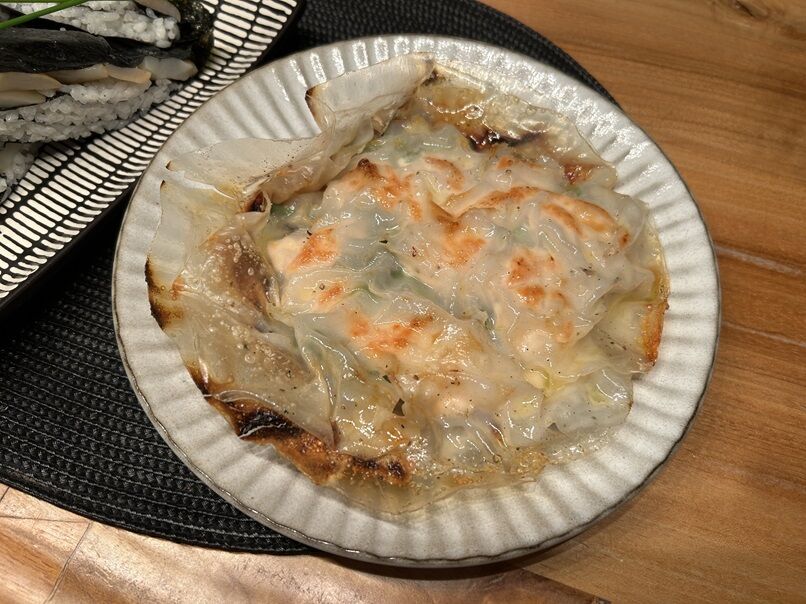 上からライスペーパーで蓋をするように置いたら焼いて出来上がり(笑)