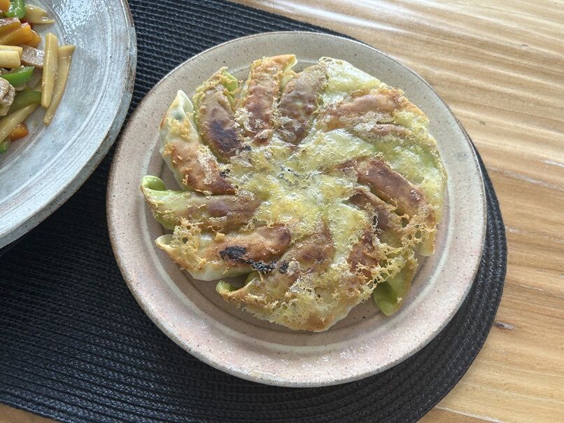 浜松餃子は、チキン入り、野菜入りの2種を交互に並べています。