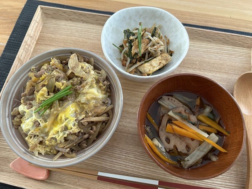 ■ 牛ひき肉の柳川風丼