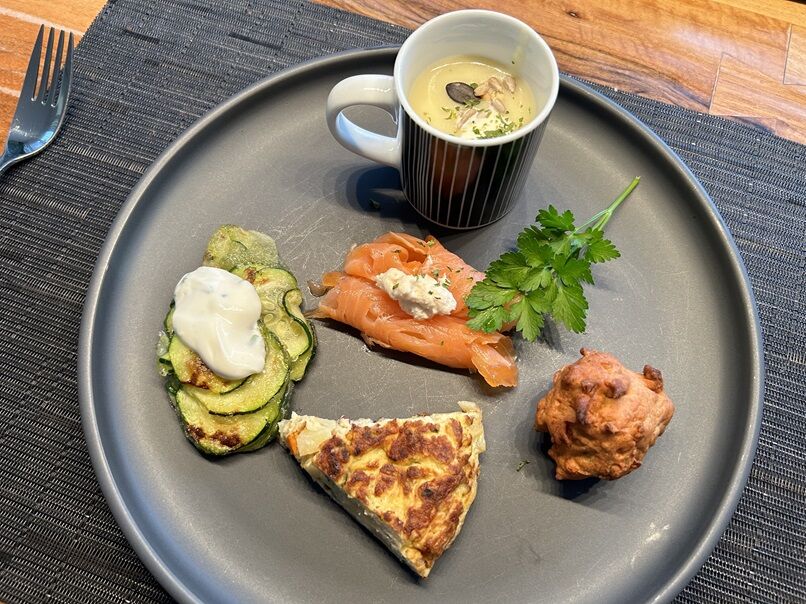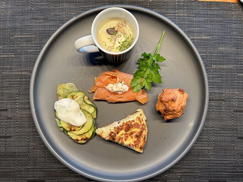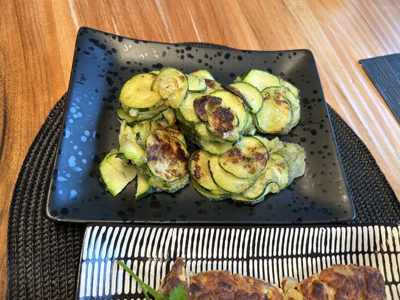 ズッキーニにはヨーグルトソースを付けて頂きます。