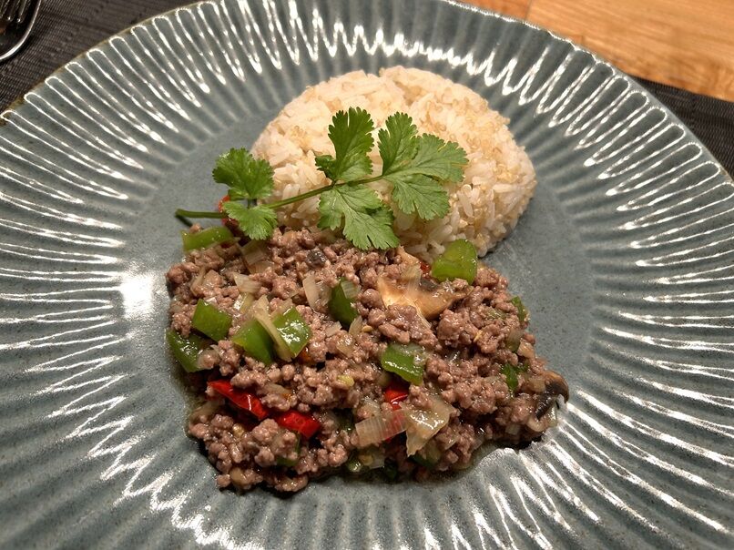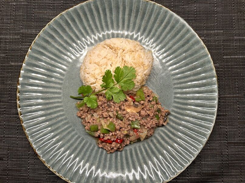 タイ風牛ひき肉の炒め物。