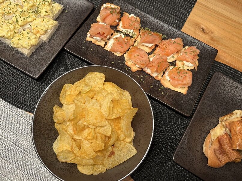 スモークサーモンとクリームチーズは、そのままクラッカーに乗せただけ(笑)