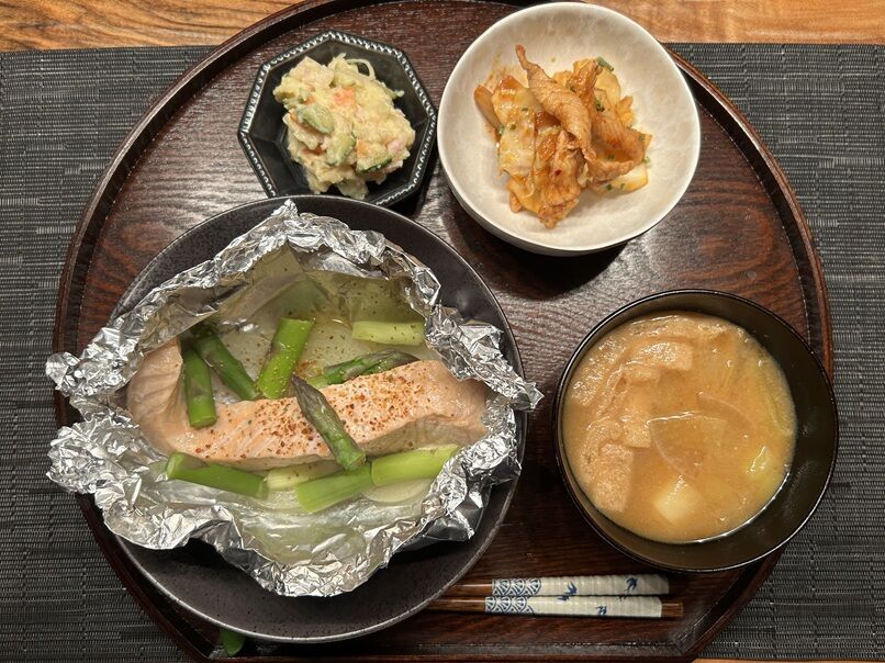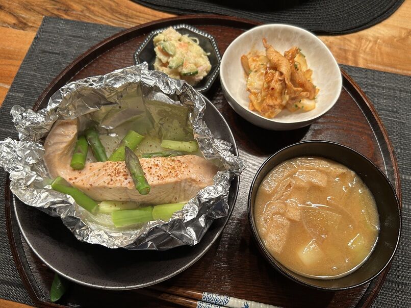 サーモンのホイル焼きがパートナーには少し物足りないかと思い、