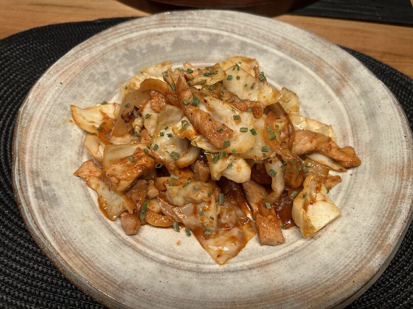 ■ 豚肉とキャベツのキムチ風味の炒め物