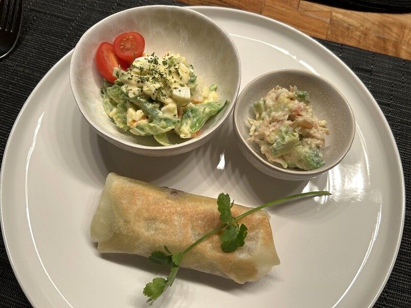 春巻の具にはしっかりめに味を付けたので、辛子だけ付けて頂きました。