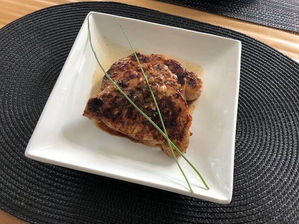 焼肉のたれのようなソースを作って豚ロース肉を2時間ほど漬けてからソテーしました。
