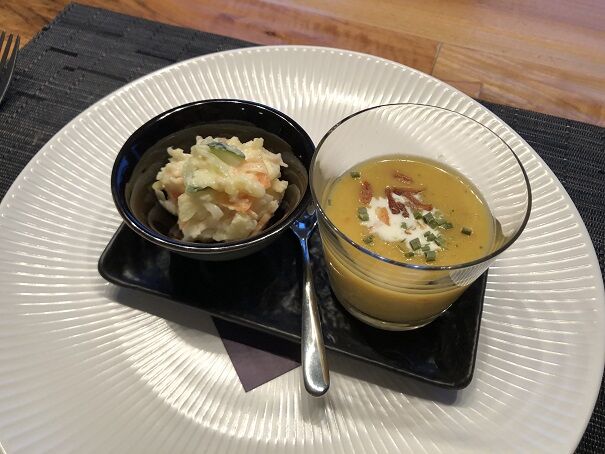 スープはこれまた昨日の副菜のサブジ風にじゃがいもを足してリメイクしたもの(笑)