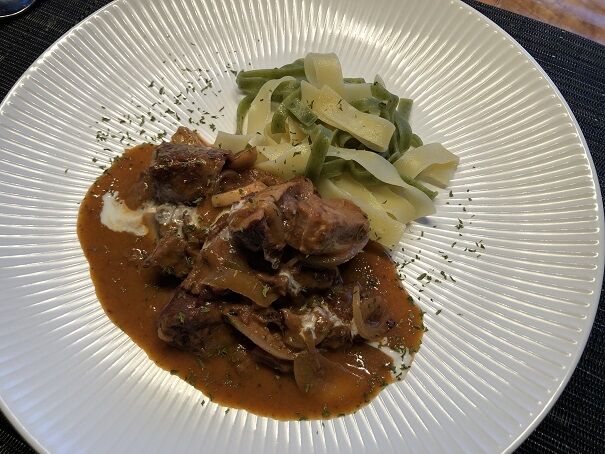 先日の牛肉の赤ワイン煮の残りがあったので、リメイクしました。