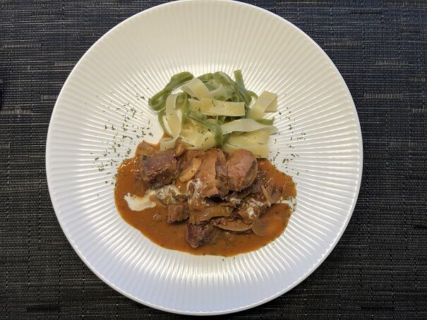 フェットチーネと、ほうれん草入りのタリアテッレと一緒に頂きます。
