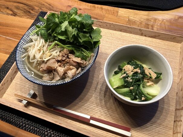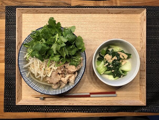 豚バラ肉のフォー、青梗菜とツナのミルク煮。