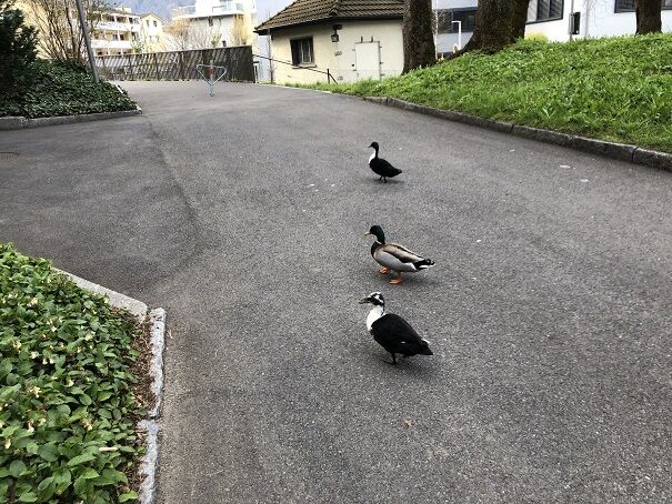 鴨が4羽、お散歩していました。