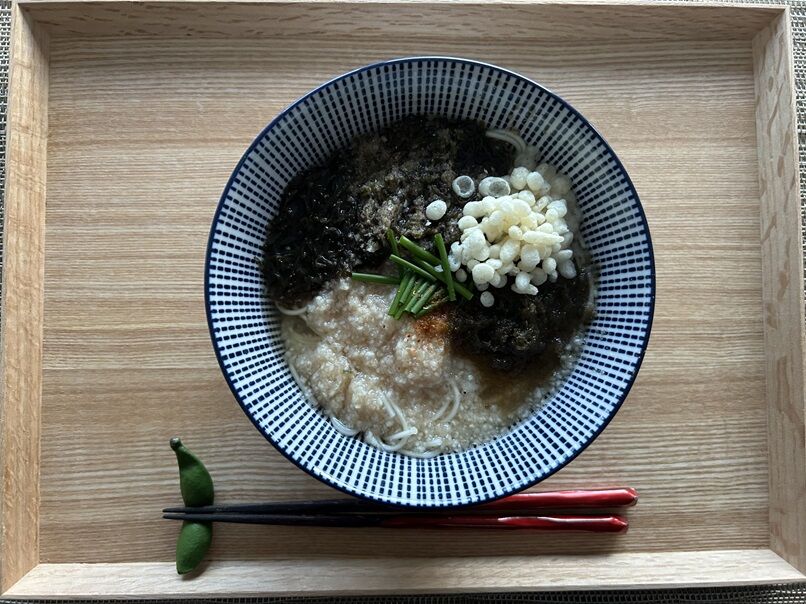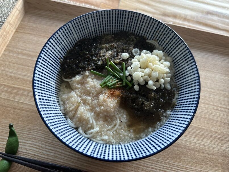 今日は水で戻しためかぶも入れ、おしょうゆを少し足して頂きました。