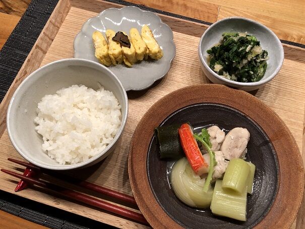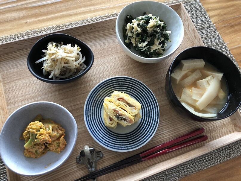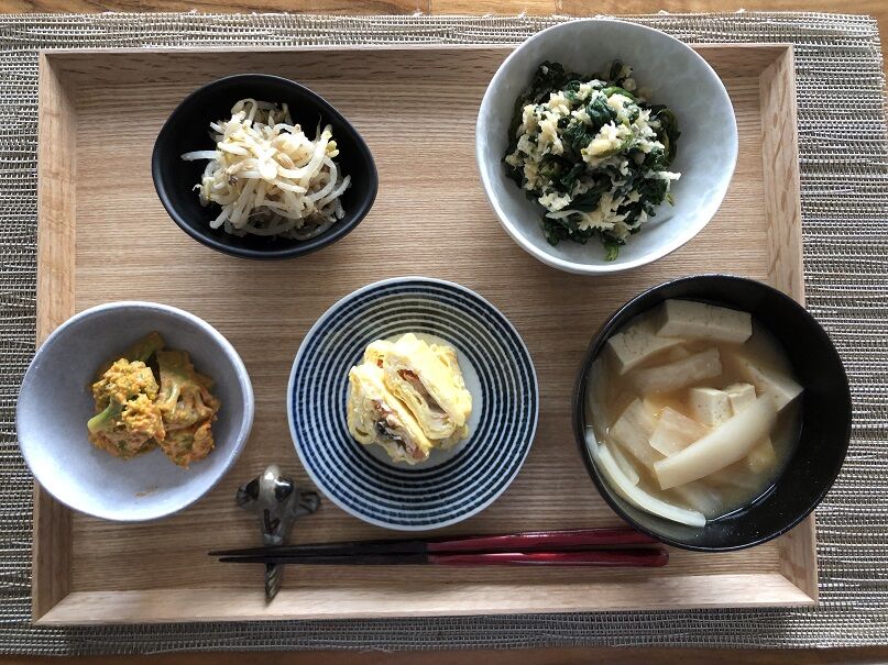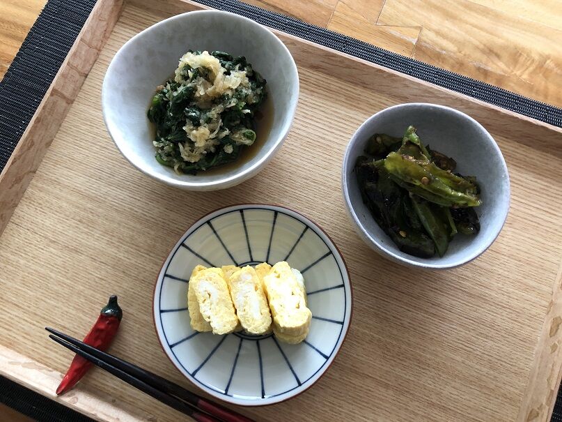 ほうれん草のみぞれ和えは、白だし、レモン果汁、おしょうゆ少々で味付け。