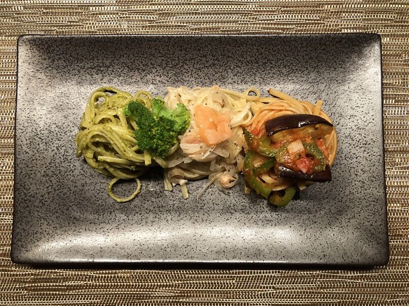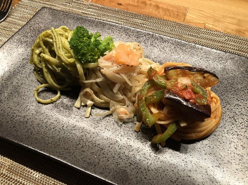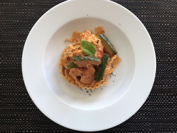 Barilla(バリラ)のアラビアータソースと生クリームで和えました。