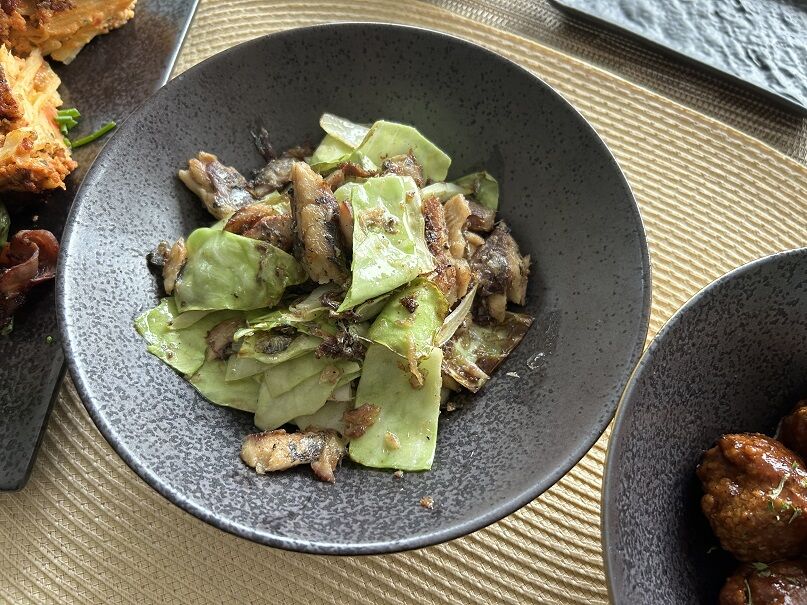 オイルサーディンとキャベツはペペロンチーノ風。