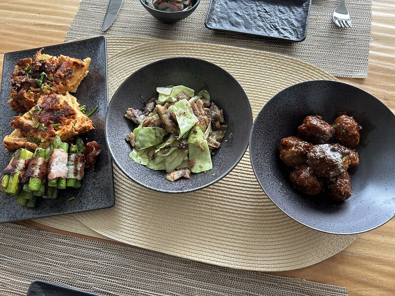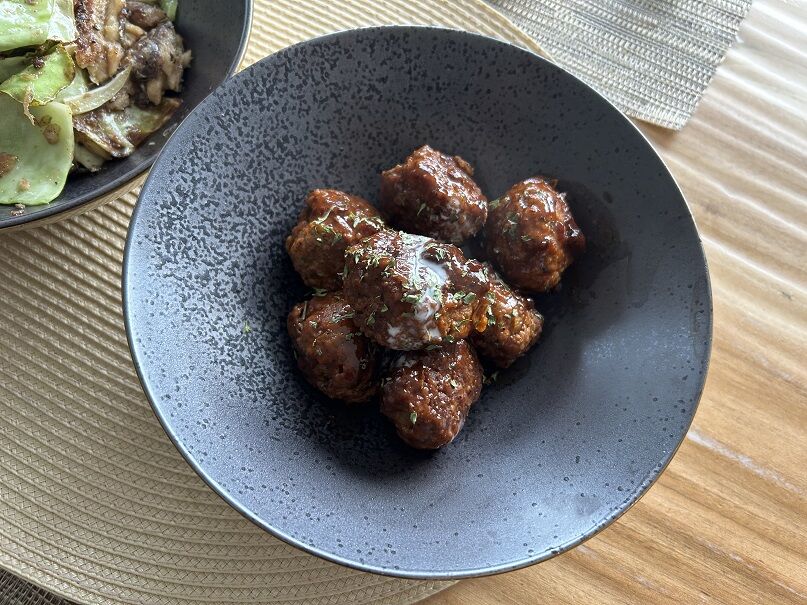 ミートボールには、母のレシピの少々甘めのハンバーグソースを。