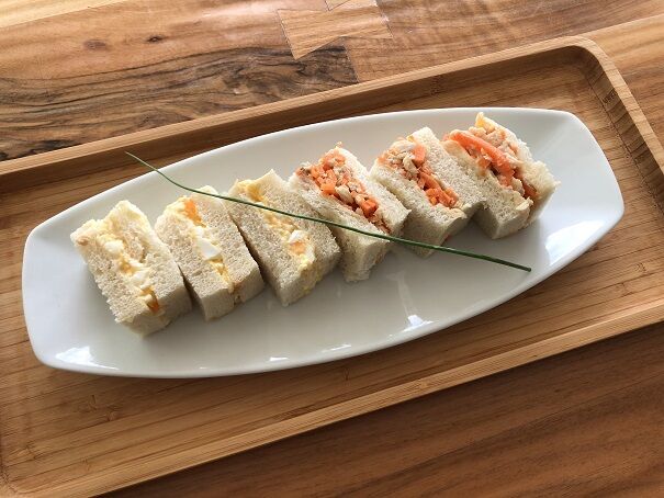 私は食前酒用にほぼ人数分、卵のサンドイッチ、ツナと人参のサンドイッチを準備。
