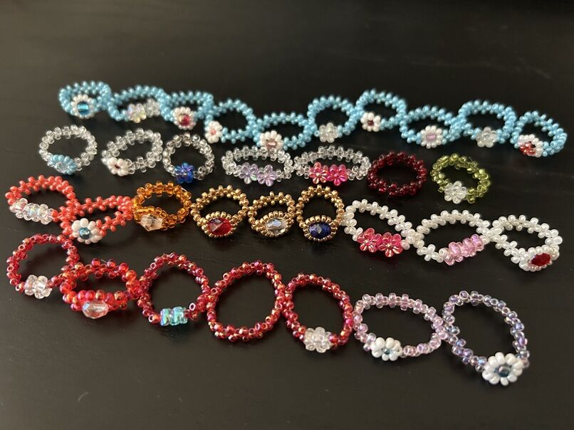 8月1日のスイス建国記念日に向けて、ビーズでスイス国旗の指輪を増産中。