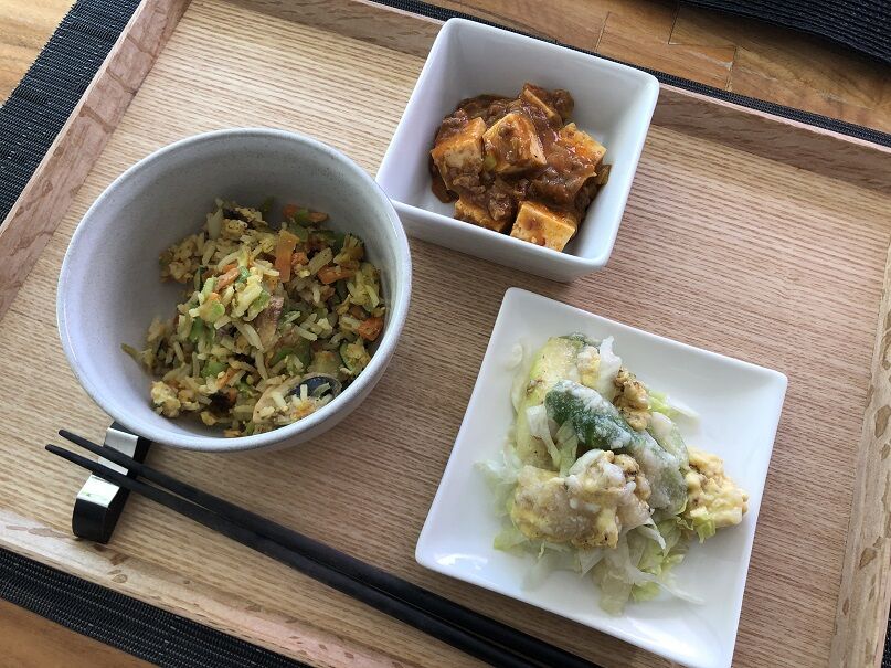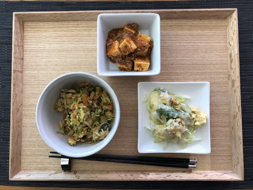 炒飯は、昨日のバスマティライスの残りに、ズッキーニ、ポロねぎ、人参、