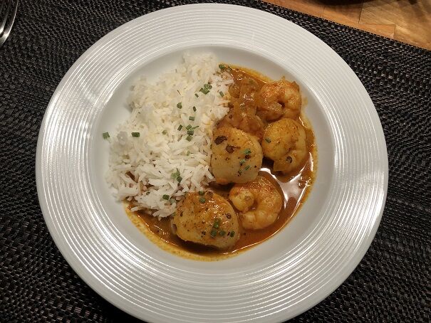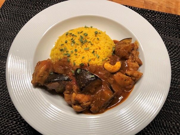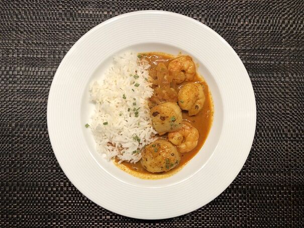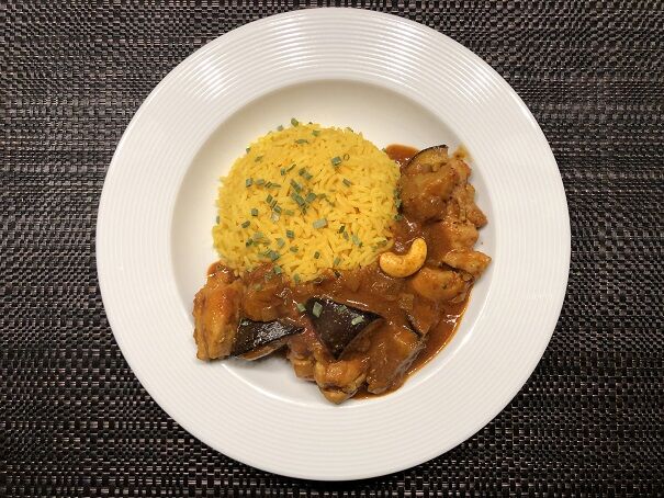 バスマティライス+クルクマ+グリーンアスパラガスと一緒に頂きます。