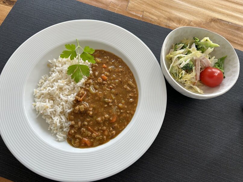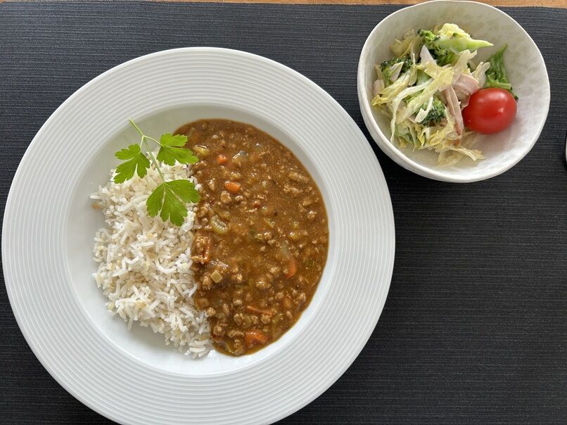 茄子たっぷりのキーマカレー。