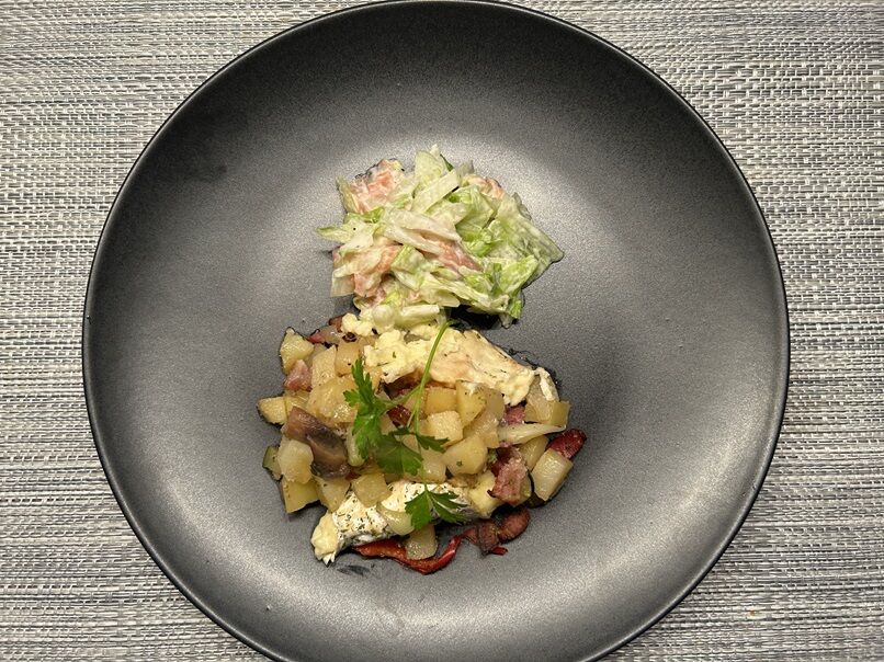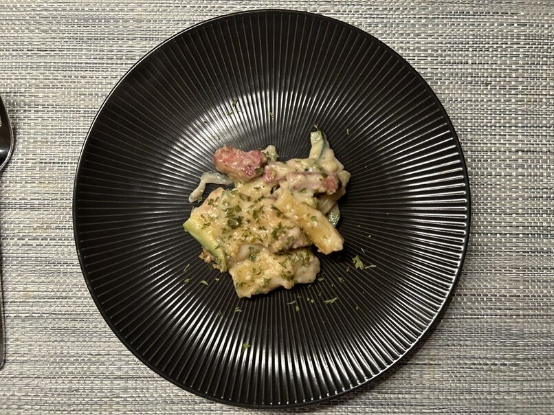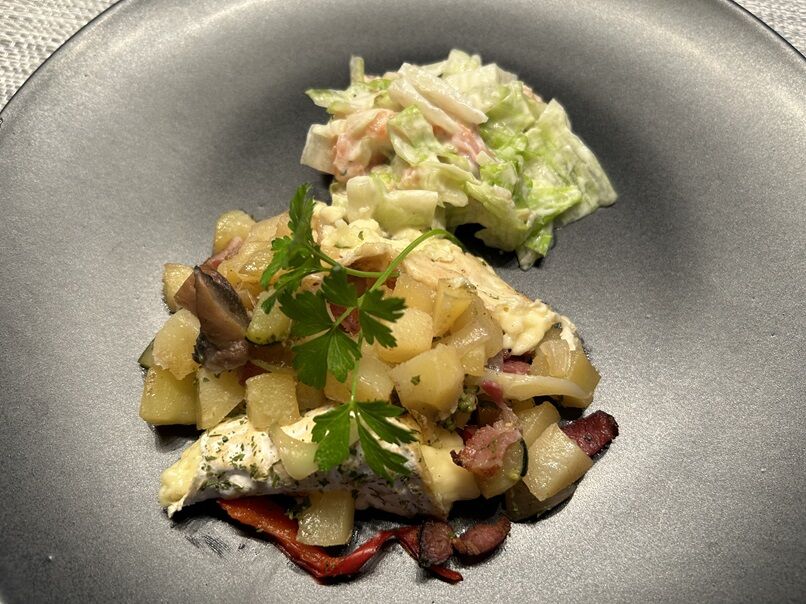 最初はレモンソールをベーコンで巻いてソテー、そして野菜+αを考えていましたが、