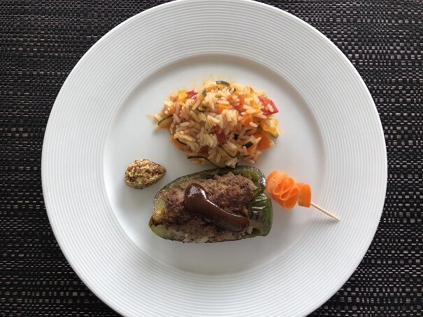 鶏ムネ肉のオーブン焼き+Gemüse Reis(ゲミューゼ・ライス/洋風炊き込みごはん?)。