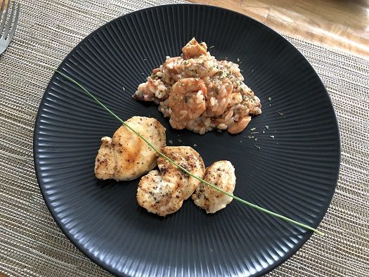 野菜たっぷりのスパイシーなリゾットと一緒に頂きます。