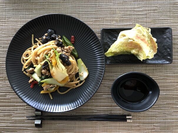 中華麺は簡単に買えないので、スパゲッティ・クアドラティという、