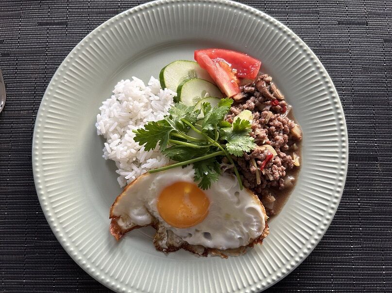 パートナーがバルコニー菜園で育てて乾燥させたチリも入れました。
