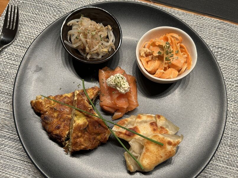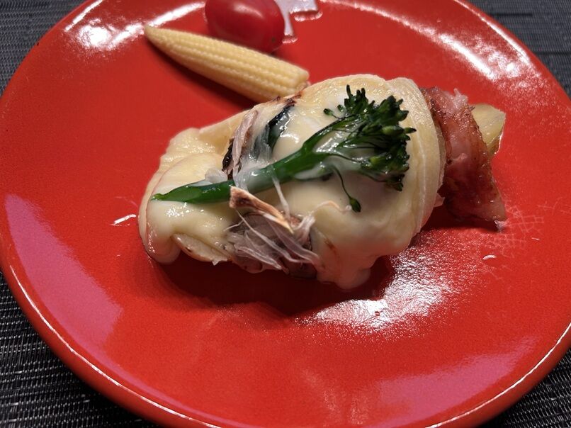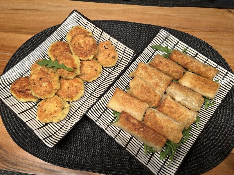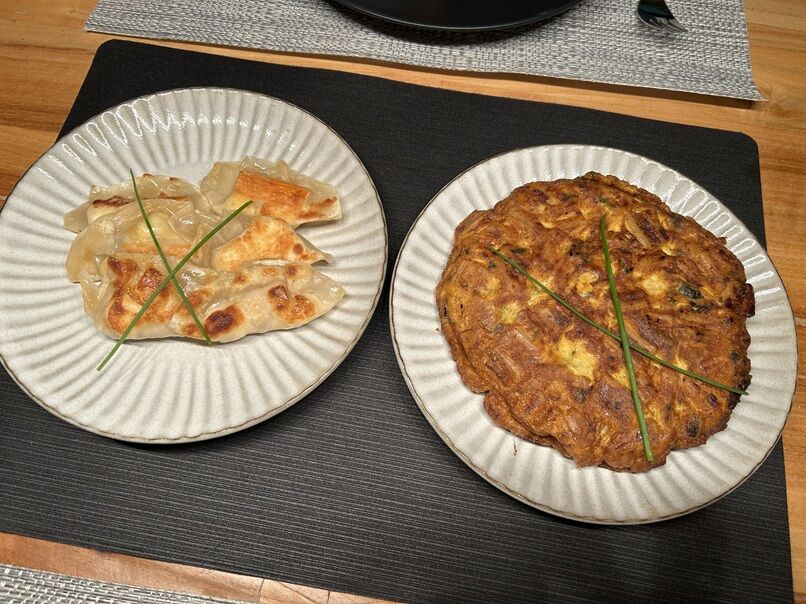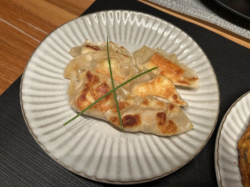 6枚だけ残っていた餃子の皮に、カニかまぼこ、チーズを入れて包み、